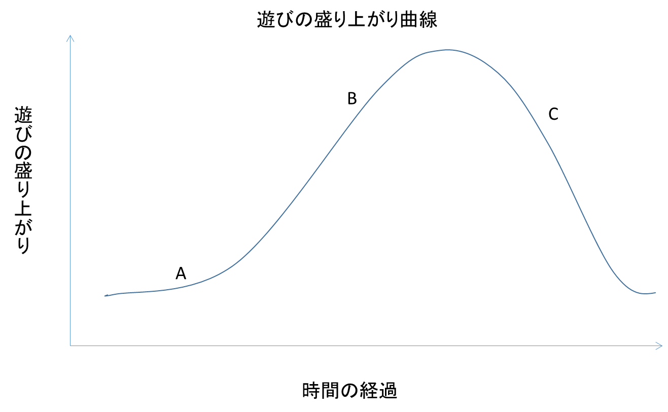 子どもの発達や個性に対応するのはもちろんですが、子どもの心理状態、遊びの盛り上がり曲線に応じて働きかけを変える技術が必要なのです。