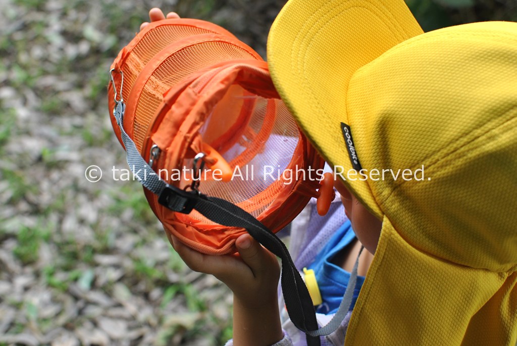 子どもたちは夢中になって虫を捕まえ、観察ケースに入れてじっくりと観察していました。