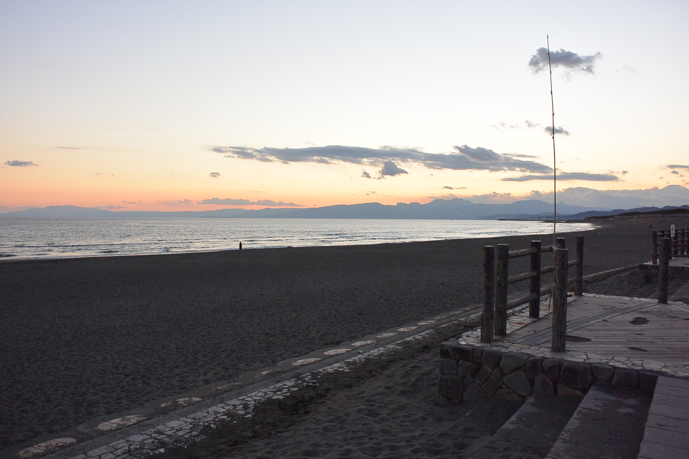 夕方、思い立って、海辺の夕陽が見たくなって圏央道を茅ヶ崎までドライブ。