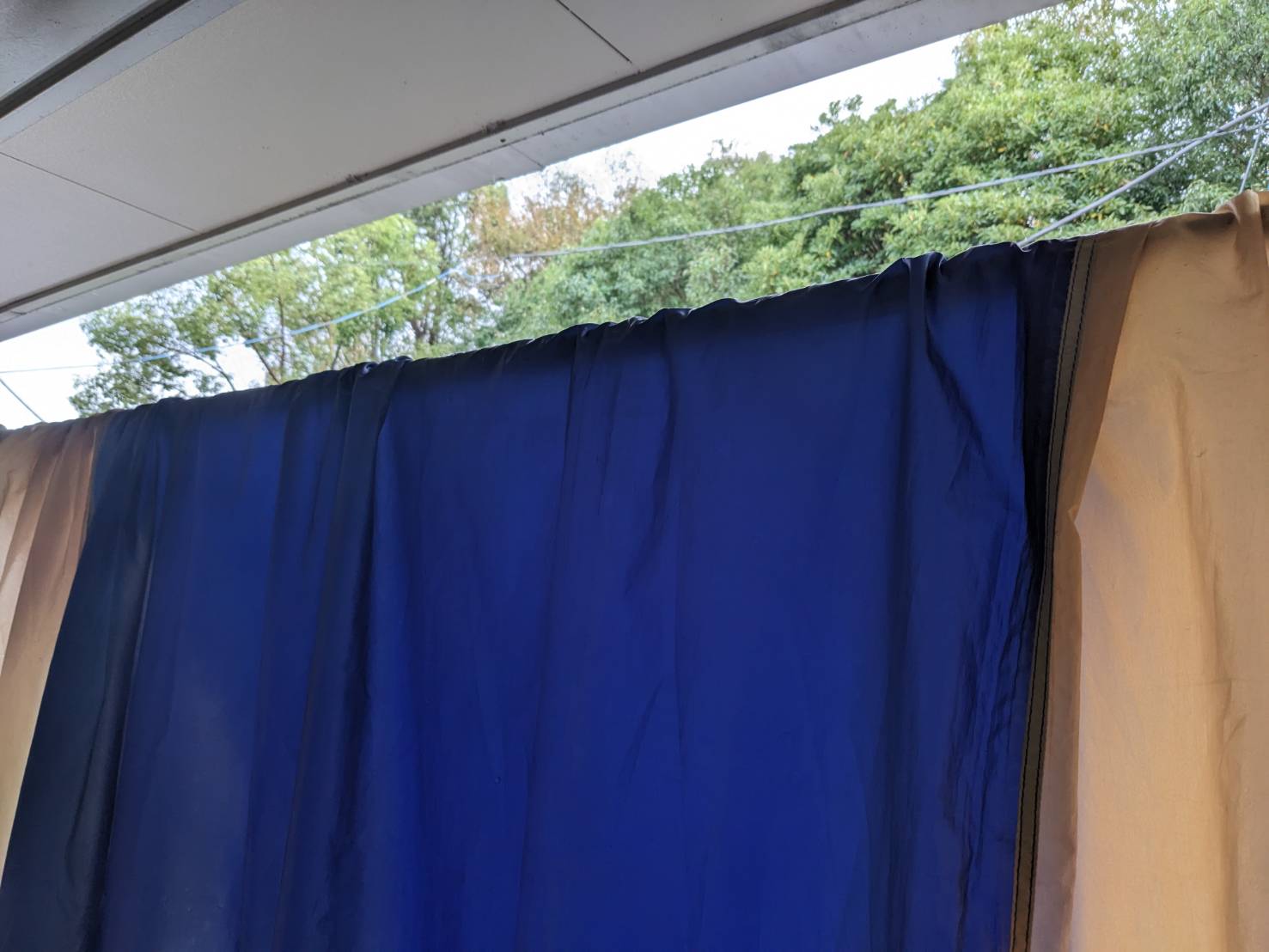 写真は今日の活動でびちょびちょになったタープを干しているところ