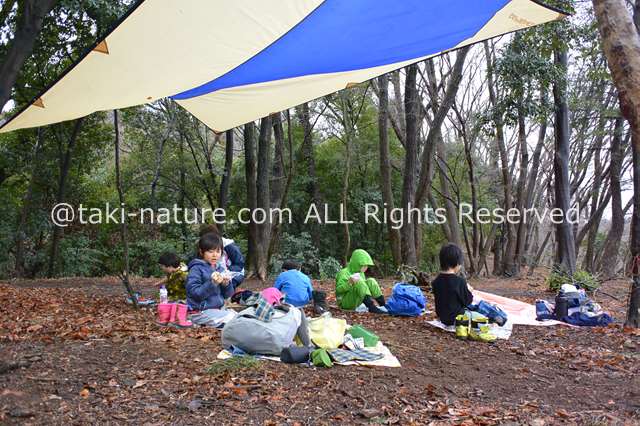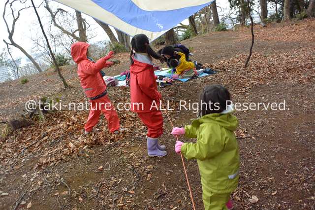 森のようちえんはファッションではないので流行りのタープなどではなく、長方形のタイプが有効面積を確保し、雨を凌ぐことが出来ます。