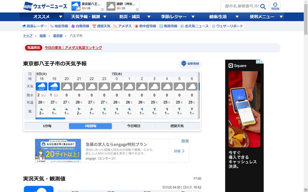 絶対ではありませんが、参考にしているサイトの一つがウェザーニュースです。