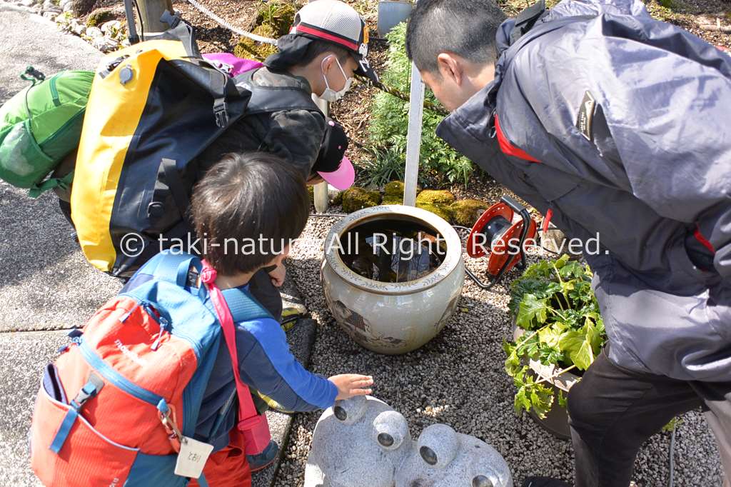 集合場所の近隣施設の水がめの中にも春の自然が生まれている。