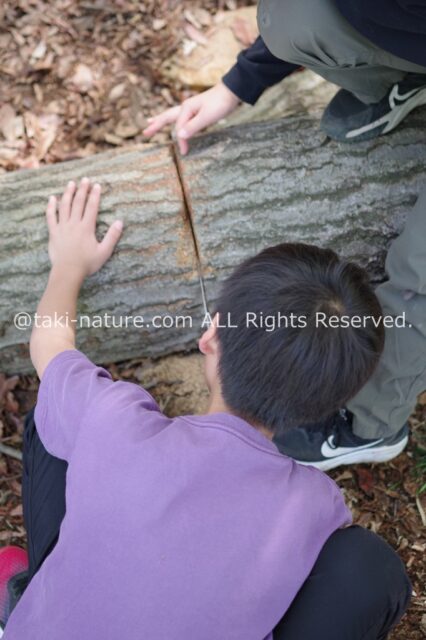 この丸太、切るそうです。