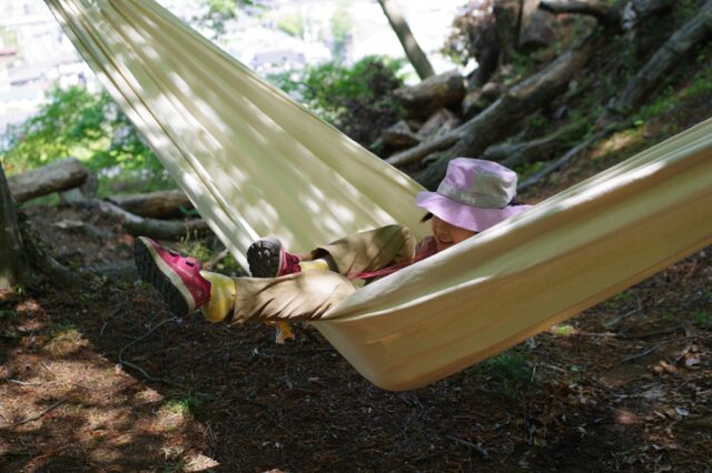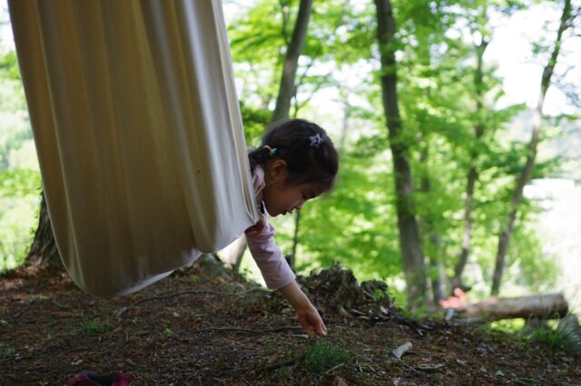森の教室(2026/04/19) 森のようちえん 2026.04.19 新緑のいい季節です。 風を感じ、木漏れ日の下でハンモックに揺られる。 「ほりさん、絵本作ろうよ」 1日、緑の森のゆうえんちで過ごしました。 身近な自然の美しさを感じ、快の感情とセットで記憶させたいと思います。 季節とフィールドを活かした森の体験。 徹底して能動的な体験となる、欧米で研究が進む、Guided Play。 自然の中で自分を楽しむガイドとなればと思います。 次回もお待ちしています。 滝山ネイチャークラブ 森の教室 堀岡正昭