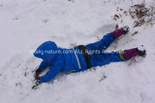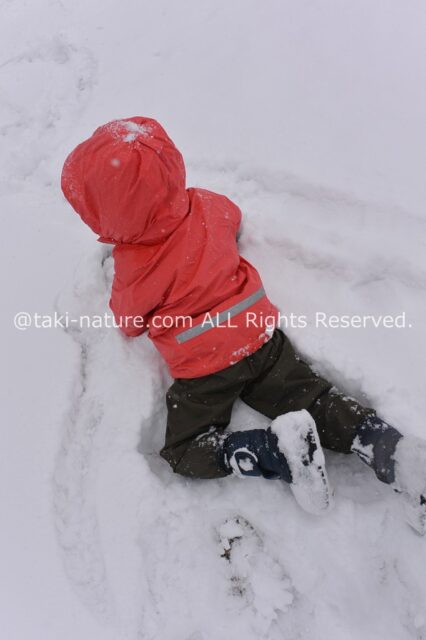 雪でも、マイナス1℃でも、子どもたちは普段のレインウェアで大丈夫です。